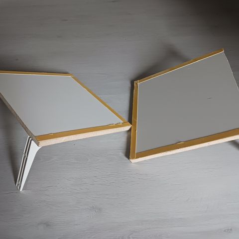 Pinnoilla jonkin verran käytönjälkeä. Mukaan saa taustalevyt jotka ei ole ollut ikinä kiinni hyllyssä kun omaan silmään näyttänyt paremmalta ilman. Hyllyyn kai alunperin kuulunut jotkut jalatkin mutta nekään ei oo ollu ikinä kiinni enkä löydä niitä enään mistään.