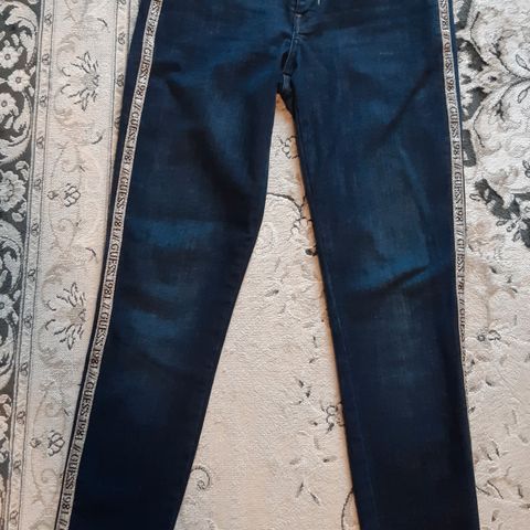 Guess naisten farkut, valmistettu sinisestä denimistä. Koko S, vyötärökoko W28. Perinteinen viisitaskumalli, vetoketju- ja nappikiinnitys edessä. Takana kaksi taskua, joista toisessa Guess-logo. Sopivat arkipukeutumiseen ja yhdisteltäväksi erilaisten yläosien kanssa.