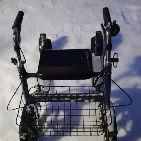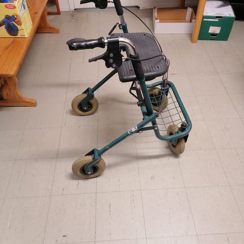 Pieneen tilaan menevä rollaattori,etukorilla Jarrut etupyörissä, kääntyvät.Vain nouto.