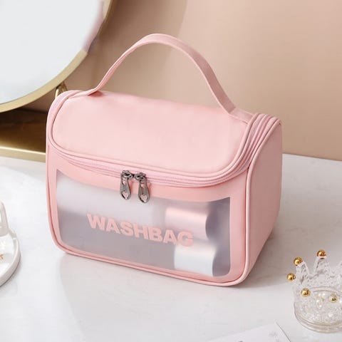 1. Erinomainen laatu, paksu PVC-materiaali, litteä ja kaunis pussin muoto. 2. Läpinäkyvä PVC-etupuoli, helppo löytää esineitä. 3. Suuri kapasiteetti, voi tallentaa kaikenlaisia hygieniatuotteita. 4. Kaksisuuntainen metallivetoketju, helppo avaaminen ja sulkeminen. 5. Kannettava, hieno ompelu, kaunis ja helppo pitää. 6. Materiaali: PVC+PU. 7. Koko: 22 x 16 x 12,5 cm