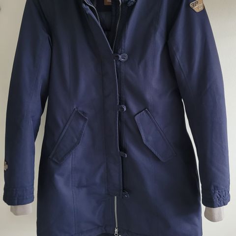Icepeak talvitakki naisten, koko 36. Sininen, reisipituinen malli, valmistettu polyesteristä. Takissa on kiinteä huppu, jossa tekoturkisreunus, sekä etutaskut. Sopii kylmään säähän ulkoiluun ja arkeen.