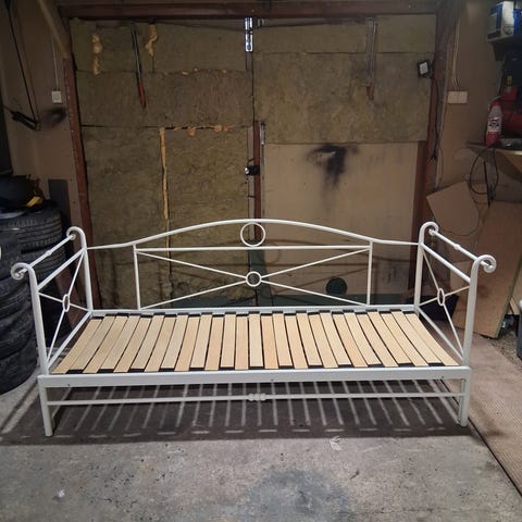 Myydään ilman patjaa. Yksi tapinpää mennyt hukkaan.