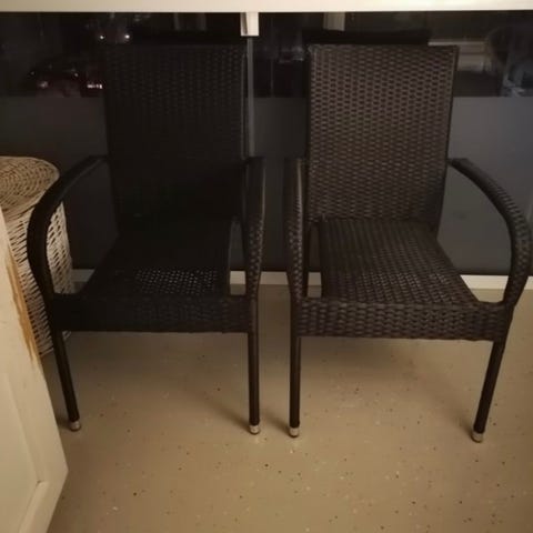 Tukevat ja ehjät tuolit, käytön jälkiä on, mutta yleisilme siisti.