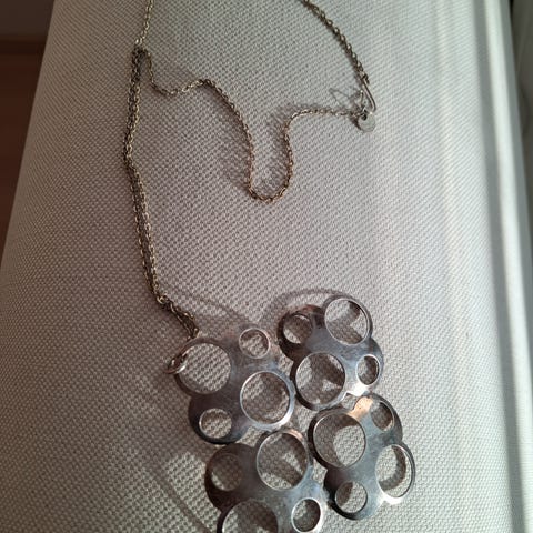 Aarikka Vintage 60-luku kaulakoru metallinen hopeanvärinen