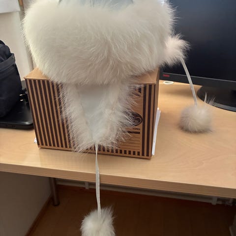 For sale: a dark brown fur hat (classic winter style). Warm, neat-looking, and in good overall condition. Lined inside and has a hanging loop.
