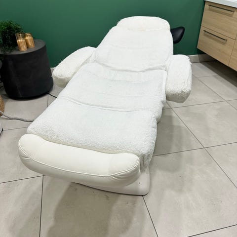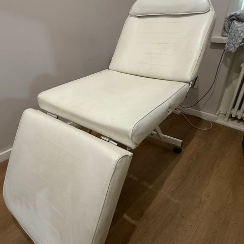 Sähköinen hoitotuoli harmaalla keinonahkaverhoilulla. Tuolissa on säädettävä selkänoja ja jalkatuki, jotka ohjataan johdollisella kaukosäätimellä. Istuimessa on käsinojat ja erillinen niskatuki. Soveltuu esimerkiksi kauneus-, jalkahoito- tai hoitola käyttöön sekä muuhun vastaavaan hoitotyöhön.