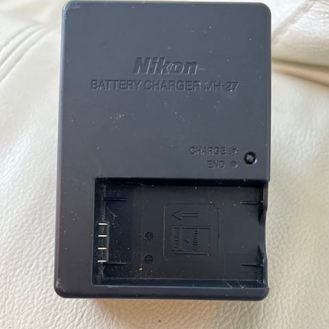 Nikon F5 ja vanhan D1 järjestelmäkamera akun laturi. Itselläni oli muistaakseni d1x. Laturi on säilynyt todella siistissä kunnossa!