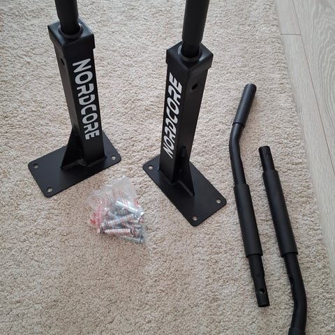 Myydään ylimääräinen ja käyttämätön leuanvetotanko, joka soveltuu oviaukkoon sisäharjoitteluun. Mallissa on pehmustetut kädensijat useaan otteeseen sekä tukipalkki, joka asettuu ovenkarmeja vasten. Väri musta/harmaa. Sopii ylävartalon lihasten harjoitteluun kotona, kuten leuanvetoihin ja roikuntaliikkeisiin. Pakettiin kuuluu tanko osina, kiinnitysosat ja käyttöohjeet. Ensimmäinen kuva oma kasattu malli, toinen kuva paketissa oleva myytävä tanko.