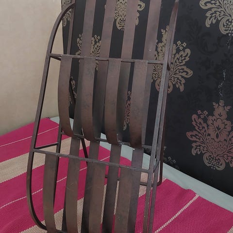 Myyntiin tyylikäs musta metallinen lehtiteline. Sopii käytettäväksi lattialla tai kiinnitettäväksi seinään. Siistissä kunnossa.