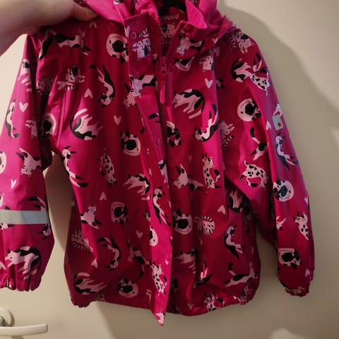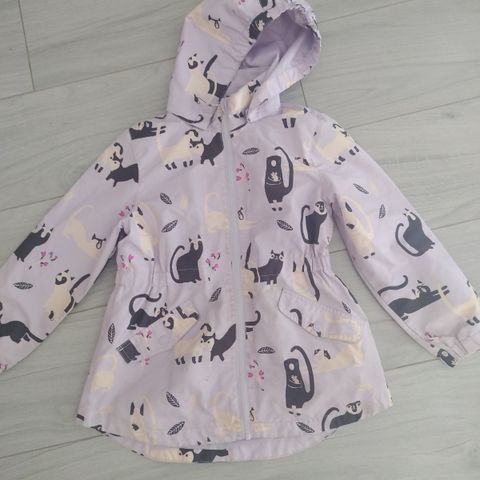 H&m kissa kuvioinen takki ohuella vuorella. Lyhyt malli. Koko 128cm. Hyvä kuntoinen.