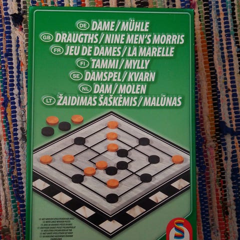 Kaksipuoleinen pelilauta, kauniit puiset pelivälineet ja nopat
