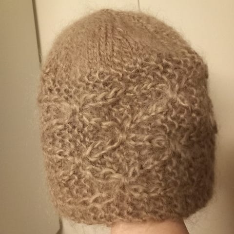 Pipo 60% & 40% mohairia, kaulaliina 90% anryyliä ja 10 % villaa.