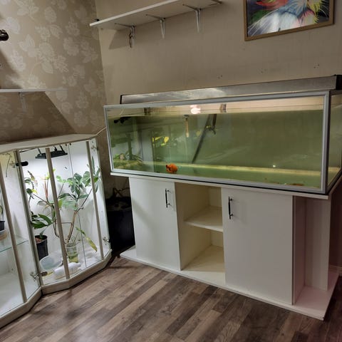 Akvaario jalustalla ja kasveilla