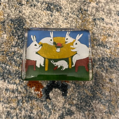 Myynnissä Tove Slotte-Elevantn Iittalalle suunnittelema Niiskuneiti ja juhannuskukat lasikortti.