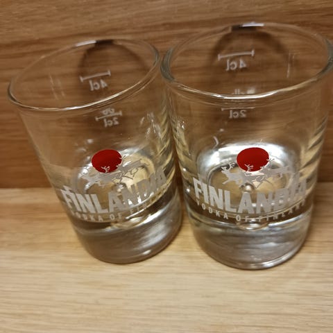 Tyylikkäät Finlandia Vodka -snapsilasit, yhteensä 5 kappaletta. Sopivat erinomaisesti juhliin, illanviettoihin tai keräilyyn.