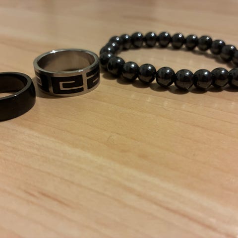 Uusia ja ok kuntoisia. Monta eri kokoa sormuksia.
