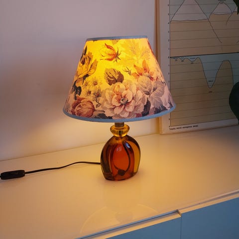 Kaunis ja vähän vanhempi pöytälamppu. Korkeus lasikuvun kanssa vähän alle 41 cm. Lamppu hieman vaaleansinisempi kuin kuvassa. Postitus onnistuu ja mahdollisesti voin tuoda lampun, jos et kovin kaukana Vantaalta asu.