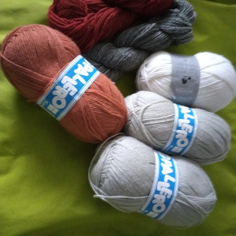 Käsitöihin villa- ja villasekoitelankoja, bambupuikot ja metallipuikot kokoa 3mm, virkkuukoukut 1,5 3 ja 5mm.