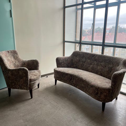 Asiasanat: vanha sohva, 50 luvun sohva, 60 luvun sohva, vintage sohva, verhoiltu sohva, pieni sohva