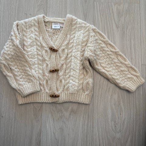 Hyväkuntoinen akryylineulepusero. Edessä hailakkaa tummaa jälkeä. En tiedä mistä on tullut. Ei hyppää kuitenkaan silmille.
