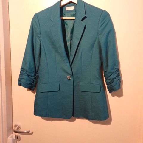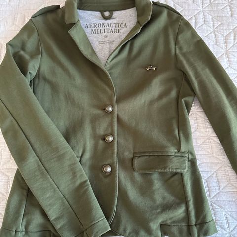 Tämä ihanuus ollut kaapissa n. 20 vuotta ja odottanut käyttöä, mutta jotenkin jäänyt ja nyt uskallan myydä. Jakku on kirkkaan vihreä ja kiinnitys kultaisilla merimies-tyylisillä nappeilla, joita myös hihansuissa ja taskuissa. Hyvässä kunnossa ja varmaan pari kertaa ollut käytössä.