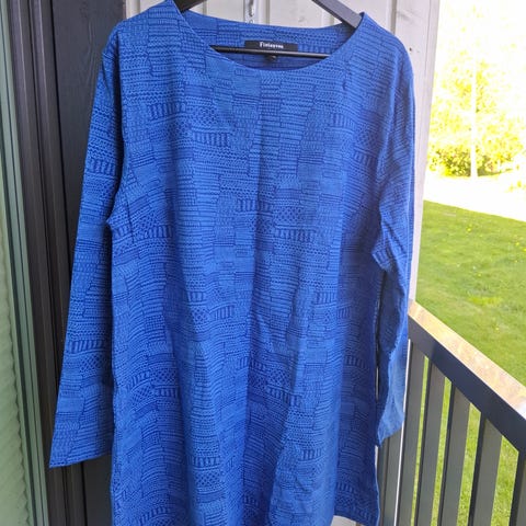 Myytävänä uudenveroinen mustavalkoinen Finlayson merkkinen tukevasta luomupuuvillasta valmistettu Suomessa suunniteltu mekko kokoa L. Mekossa on kivat leveät vajaamittaiset hihat.