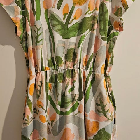 Kainalokainalo mitta on 62cm ja olkahelmamitta 88cm. Mekko menee mainiosti myös xl kokoiselle. Kuvan malli on kokoa 44-46. Nouto Turusta tai postitus 7 € tai toridiili.