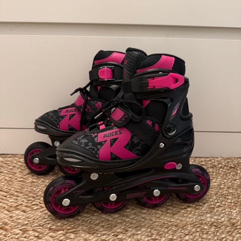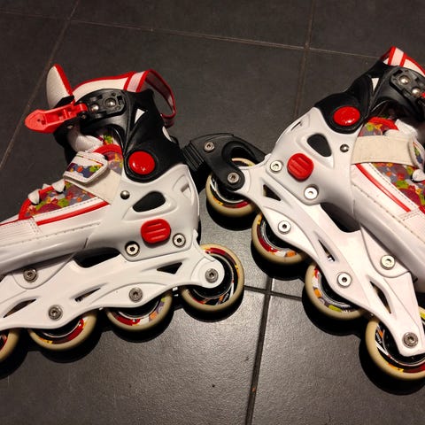 Rollerblade Microblade rullaluistimet lapsille. Säädettävä koko 28–32 (EU), ilmoitettu myös kokona 11J–1 (UK) ja 10.5–13.5 (US). Neljän renkaan alusta, jarru takana. Väri musta/punainen, nauha-, tarranauha- ja solkikiinnitys. Soveltuu rullaluisteluun ja peruskäyttöön lapsille, joiden jalankoko on säädettävän alueen sisällä.