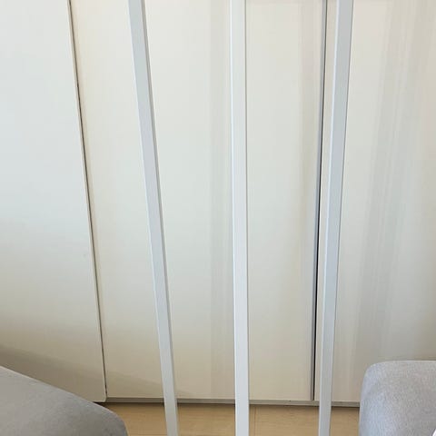 Valkoinen, kapea metallinen tanko, joka soveltuu esimerkiksi sisustuselementiksi, ripustustangoksi.