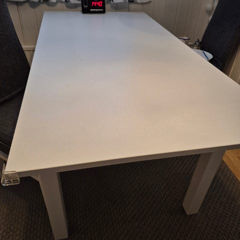Jykevä mänty pöytä, tosin liinaa tai vahakangasta (mikä oli päällä) ja painavat jämäkät tuolit (2 mäntyistä)