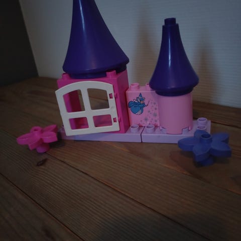 Duplo-legoja, prinsessalinnaa näillä rakennettu, ei minkään valmiin setin kaikki osat. Kaksi hahmoa, hevonen, yksi pala pyörillä, torneja ja myös keinu, johon ukkelin voi laittaa keinumaan. Nouto Herukka tai toridiili.