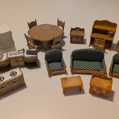 Näyttävä kokonaisuus nukkekotiin, Sylvanian families taloon tai Schleicheille.