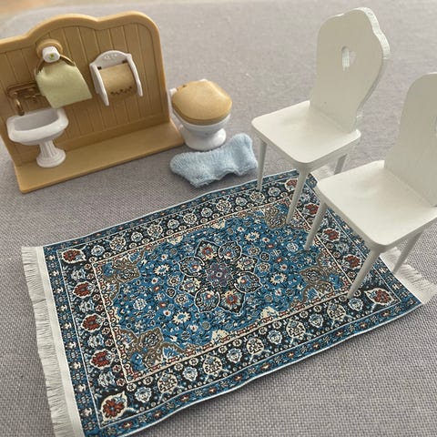 Lisänä itämainen matto ja Sylvanian families sarjan sohvapöytä.
