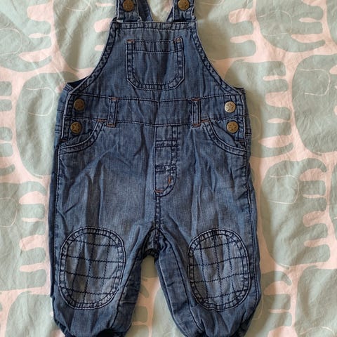 Myydään Lindexin luonnonvalkoiset vakosametti lappuhaalarit, kokoa 62.