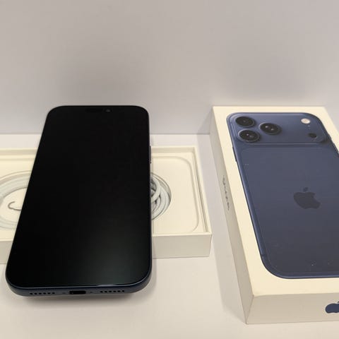 Apple iPhone 17 Pro älypuhelin, tallennustila 256 GB. Väri sininen. Laitteessa on suuri kosketusnäyttö ja usean linssin takakamera. Sopii päivittäiseen viestintään, kuvaamiseen, sovellusten käyttöön ja median toistoon. Mukana alkuperäinen myyntipakkaus kuvien mukaisesti.