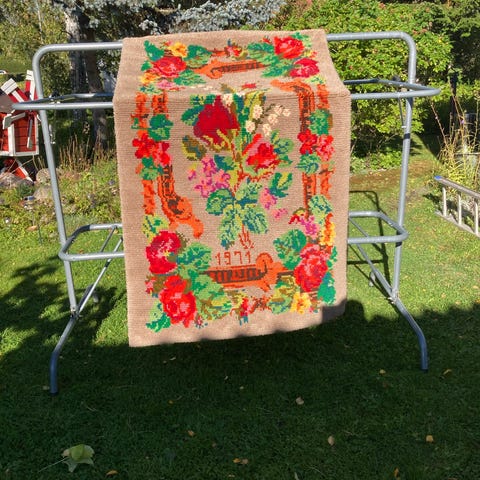 Myydään hieno ryijy. Vuosiluvusta ei tietoa, eikä tekijästä. Mahdollisuus kuljettaa Seinäjoelle, jollain aikavälillä ja jos tuon saa järkevästi pakattua, niin ehkä toridiili onnistuu myös.