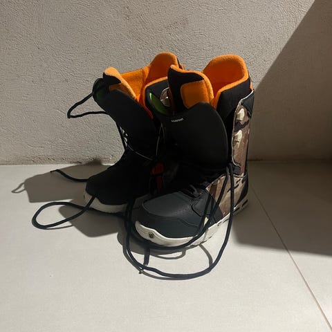 Burton Driver X lumilautakengät. Koko 43. Väriltään harmaa-keltainen tummilla yksityiskohdilla. Takaosassa uudet suurarin vaihtamat mustat nahkaosat. Hinnasta saa tinkiä.