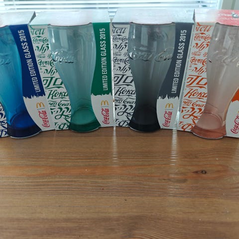 Eri vuosien McDonald's Coca-Cola keräilylasi sarjojen laseja, yhteensä 8 kpl.
