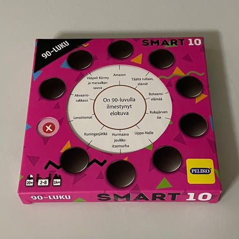 "Smart10-pelisarjan lisäkysymyspakka sisältää neljä teemallista kysymyspakkaa: viihde, urheilu, historia ja 00-luku. Jokaisessa pakkauksessa on 50 kaksipuolista kysymyskorttia, jotka sopivat Smart10-pelin Smartboxeihin."