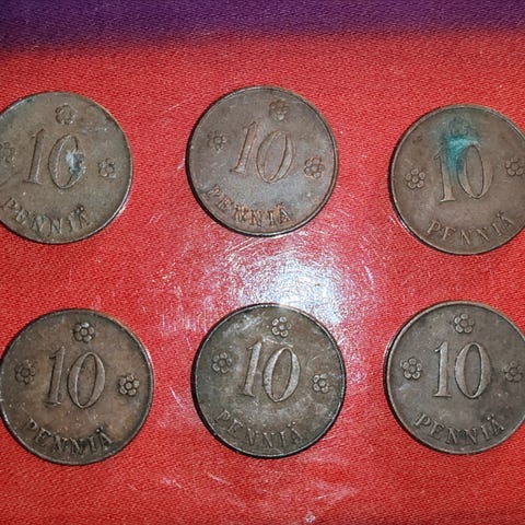 Kuparipennin kolikoita eri vuosilta. Tee tarjous jos olet kiinnostunut.