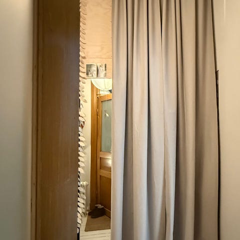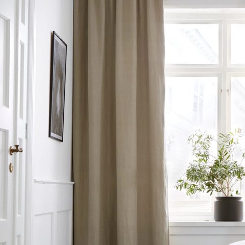 Mimou-hissiverho on 220 cm korkea, joten se sopii myös hieman korkeampiin ikkunoihin sekä useimpiin lasioviin. Kankaassa yhdistyvät vahvat pellavalangat ja kierrätetty polyesteri, ja sen kaunis, elävä pinta suodattaa valoa pehmeästi säilyttäen silti läpikuultavuuden. Kapeat sivukäänteet ja listat luovat ryhdikkäät laskokset, jotka asettuvat kauniisti riippumatta siitä, mihin korkeuteen verho nostetaan – täysin ylhäällä, alhaalla tai väliasennossa. Verho kiinnittyy tarranauhalla tukevaan alumiiniprofiiliin, joka voidaan asentaa kattoon tai seinään; mukana tuleva narunjakaja on suunniteltu vähentämään sotkeutumisriskiä, ja viimeistelynä on ruotsalaisesta pellavanarusta ja Bromöllassa valmistetusta posliininupista koostuva vedin. Oeko-Tex® Standard 100 -sertifioitu kangas, ja vedin sijaitsee edestä katsottuna oikealla puolella.