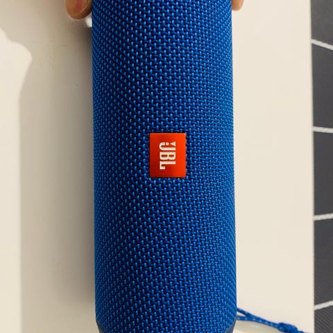 JBL kannettava Bluetooth-kaiutin musta. Sylinterinmuotoinen, kompakti kaiutin, jossa sivuilla JBL-logolla varustetut passiivisäteilijät. Päällä painikkeet virralle, Bluetooth-yhteydelle, äänenvoimakkuudelle ja toistolle. Lataus tapahtuu USB-liitännän kautta, ja mukana tulee lyhyt USB-latauskaapeli. Sopii langattomaan musiikin kuunteluun esimerkiksi puhelimelta tai tabletilta kotona tai matkalla.