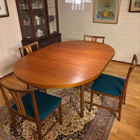 Kerstin Hörlin-Holmquistin suunnittelema Charlotte ruokailuryhmä, Asko 1970-luku.