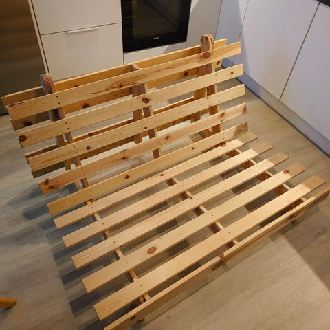 Vierassänkynä toiminut futon patja ja metallinen sohvasängyn runko. Lähellä Palokan marketteja.