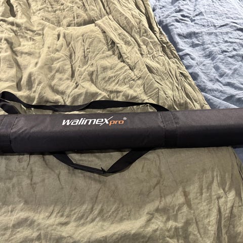 Salamaan kiinnitettävä pieni softbox, kokoontaitettava, mukana suojapussi.