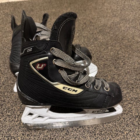 A pair of CCM kids ice hockey skates, size 32. Supportive and sturdy skates for practice or recreational skating. Overall good condition.