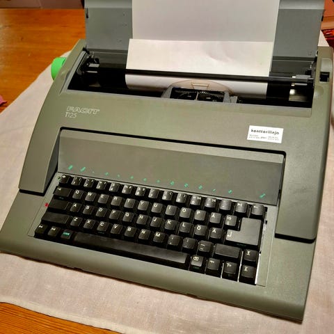 Silver-Reed Silverette II kirjoituskone punaisella rungolla. Mekaaninen pöytäkirjoituskone, jossa on mustat näppäimet ja suomenkielinen näppäinasettelu. Kirjoituskone toimitetaan kovassa kantolaukussa, jossa on kahva kuljettamista ja säilytystä varten. Soveltuu esimerkiksi kirjoittamiseen ilman sähköä, lomakkeiden täyttämiseen tai keräilykäyttöön. Voin postittaa / nouto.