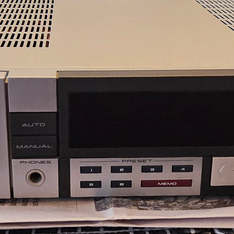 Korkealaatuinen vahvistin kattavilla liitännöillä, toimii moitteetta ja ulkoisestikin hyvin säilynyt.