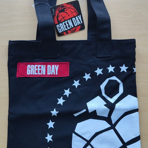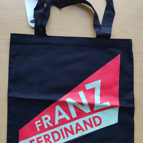 Musta Tokio Hotel -kangaskassi, jossa toisella puolella printti. Uusi, käyttämätön ja aito fanituote.