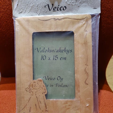 Puinen valokuvakehys. Kehyksen ulkomitat 15,5 x 20,5 cm.